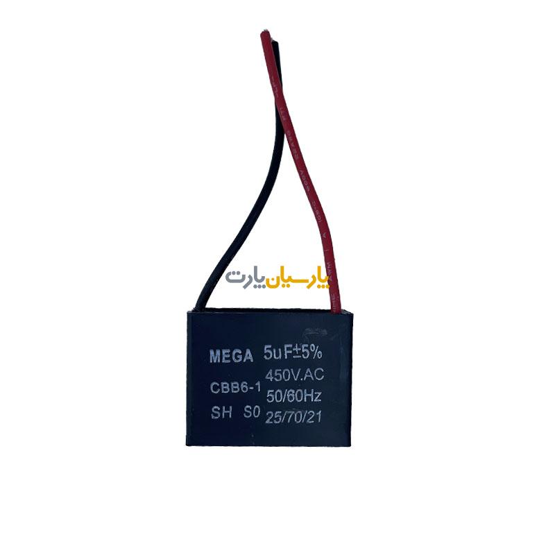 خازن پنکه در ظرفیت های 1، 1.5، 2، 2.5، 3، 3.5، 4 و 4.5 و 5 میکروفاراد تولید و عرضه می شود. خازن در پنکه باعث ایجاد اختلاف فاز بین دو میدان مغناطیسی سیم پیچ پنکه شده و سبب حرکت روتور می شود. اگر در هنگام روشن کردن پنکه فیوز می پرد علت آن می تواند معیوب شدن خازن پنکه باشد. خازن پنکه دارای تحمل ظرفیت 5% و ولتاژ 450VAC است. این خازن که مکعب شکل می باشد در دو رنگ سفید و مشکی عرضه می شود.